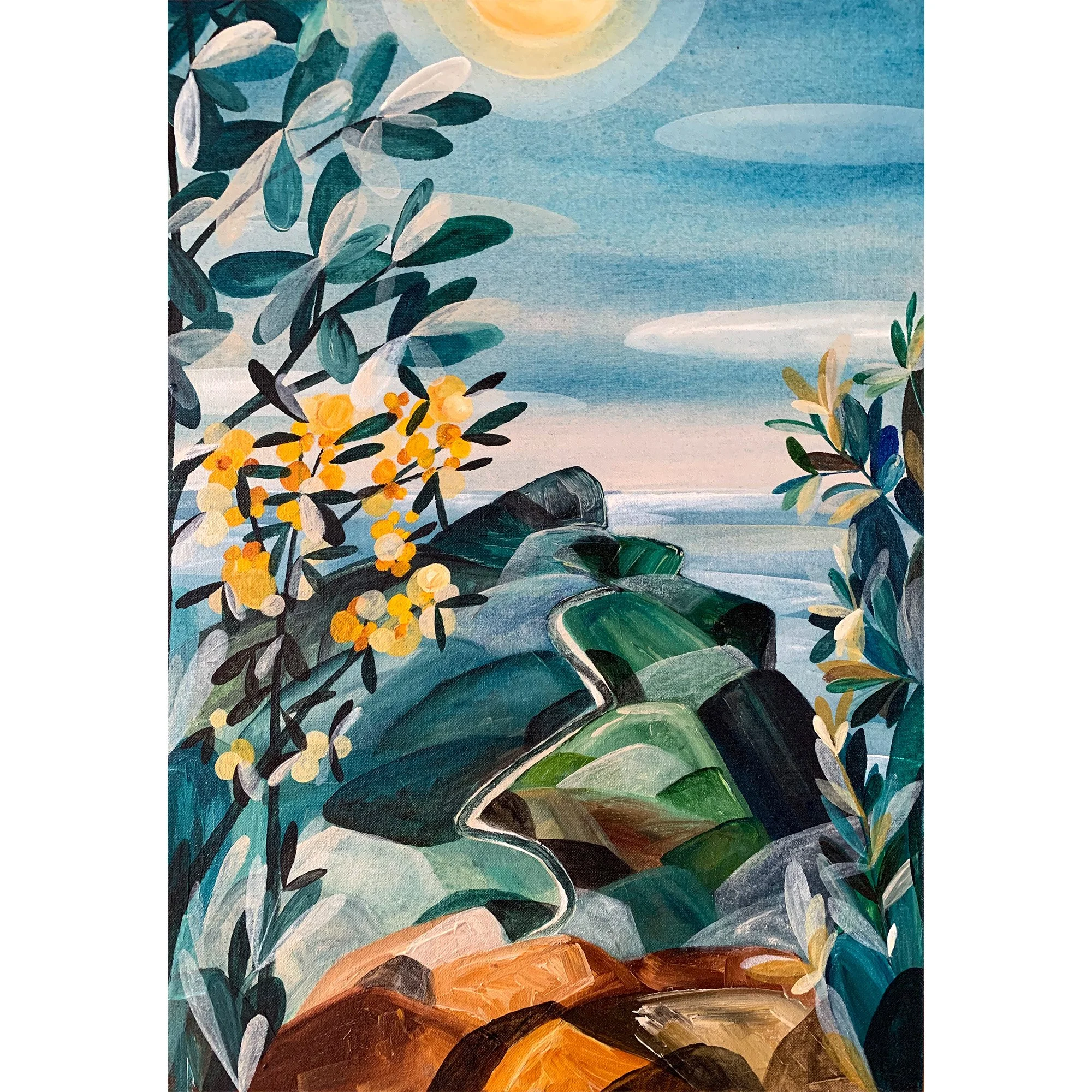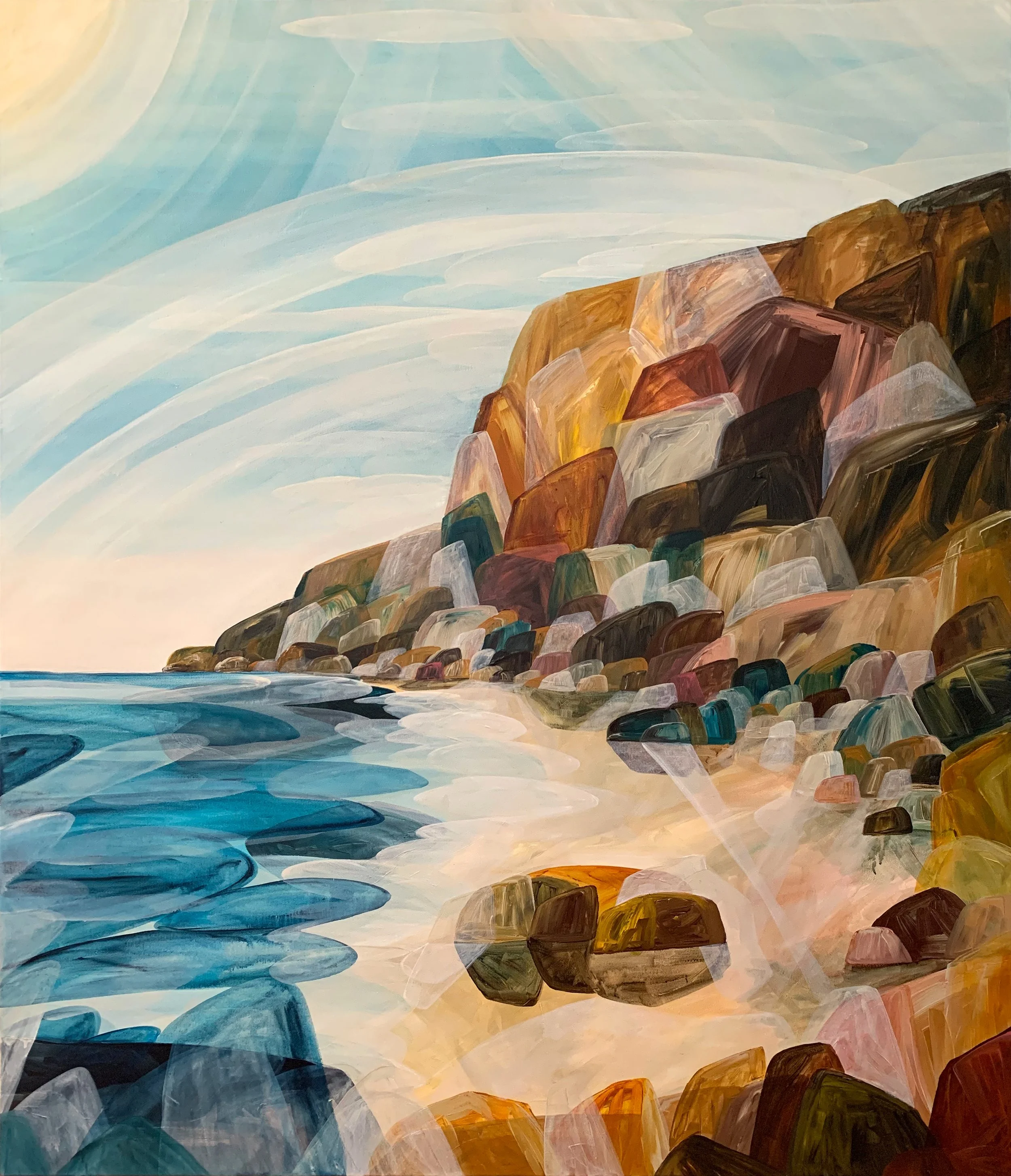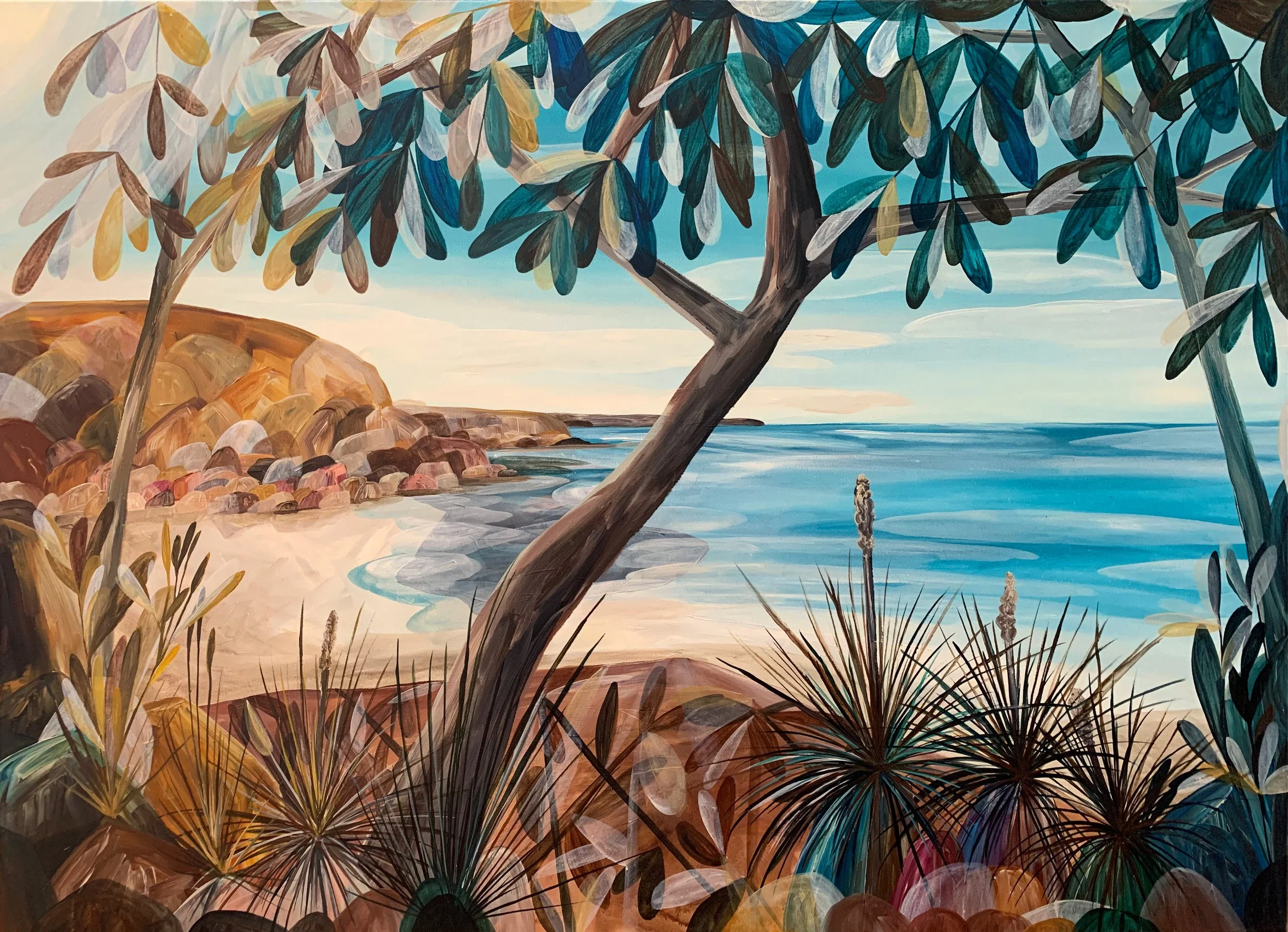 ‘Sunshine falls onto the path, leading down to the sea’(Wadawurrung) 2021 104cm x 144cm Synthetic Polymer on canvas