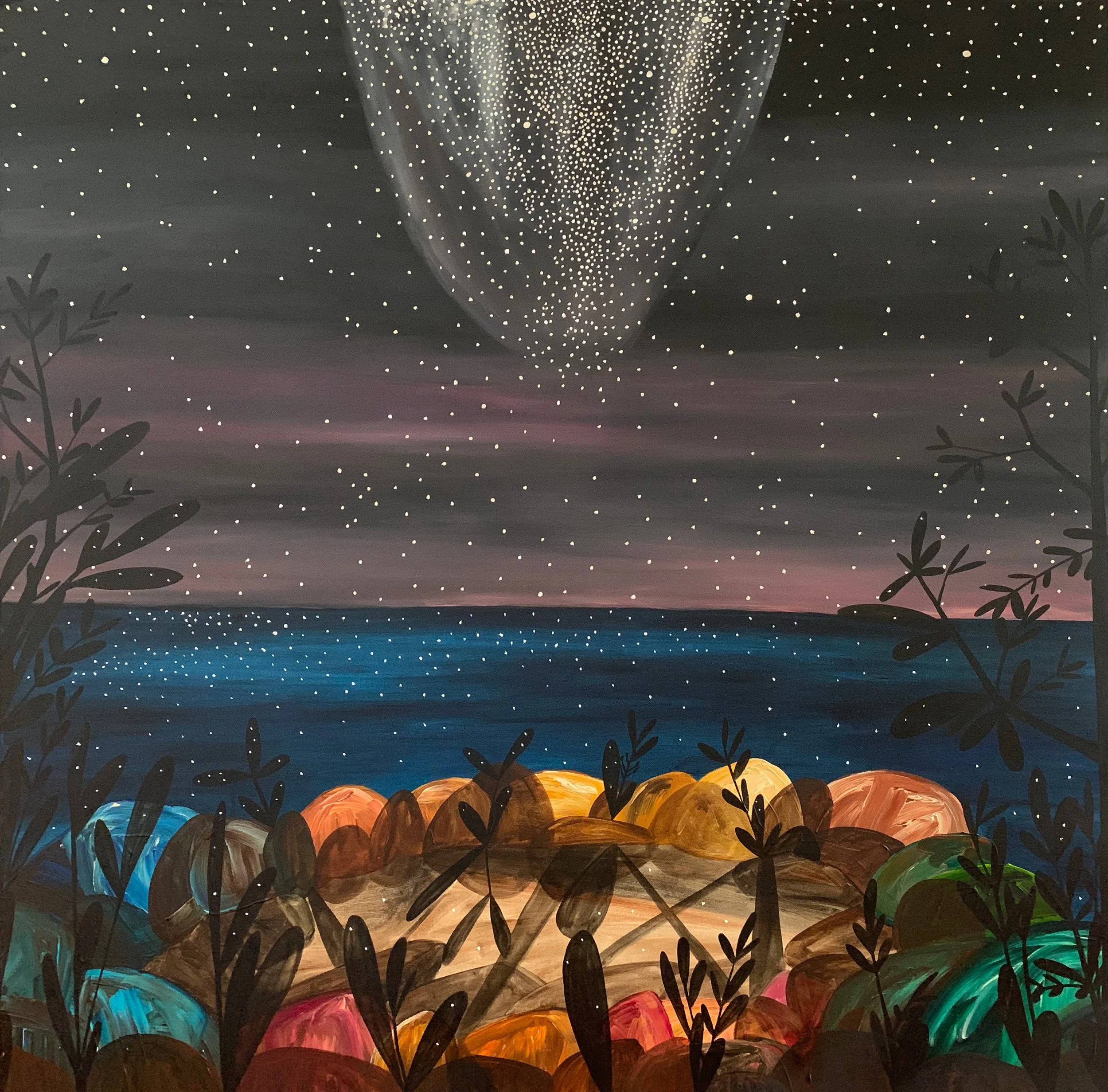 ‘Deep Time, resting, catching the stars as they fall’ (Wadawurrung) 2021 124cm x 124cm Acrylic and Oil on Canvas