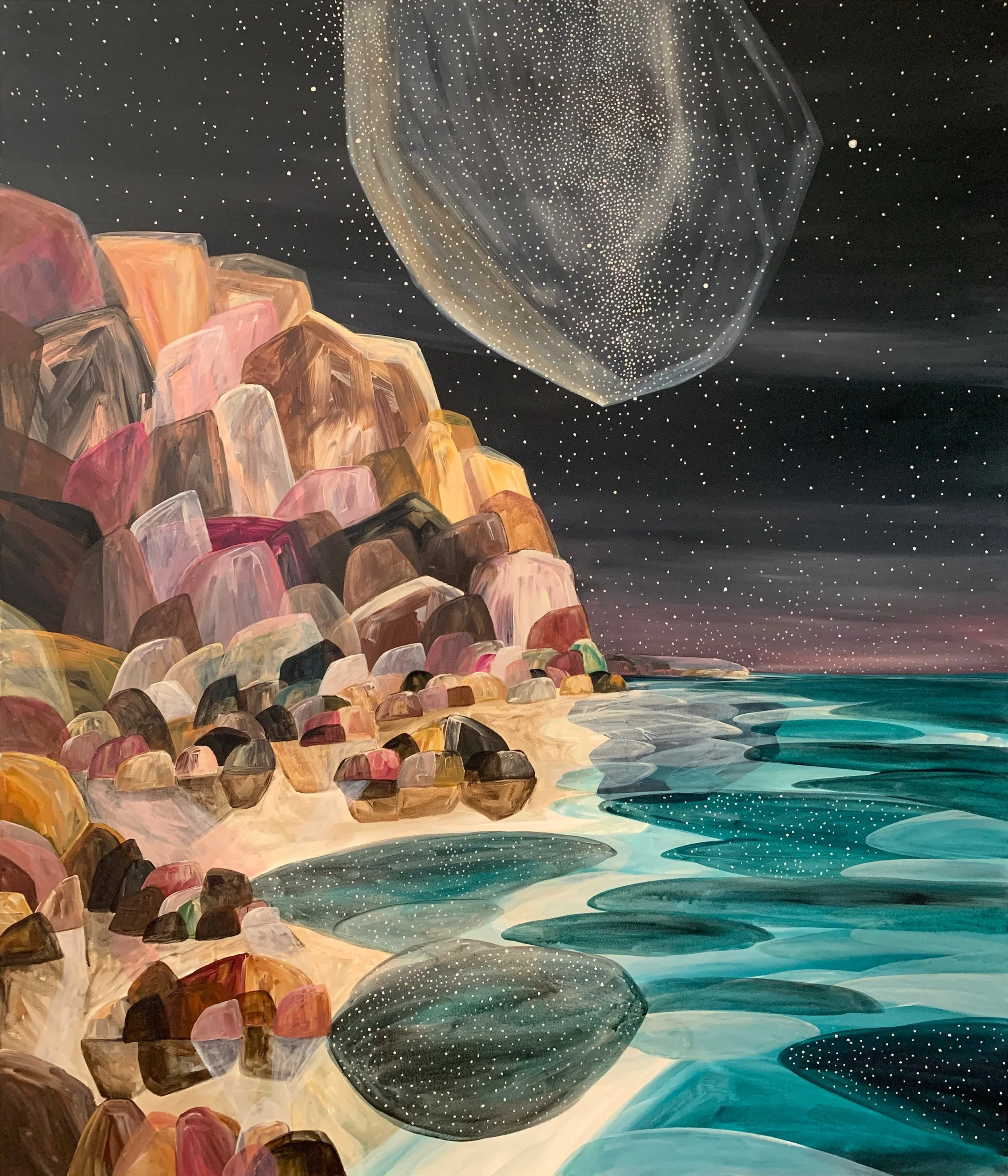 ‘Deep Time, under the Milky Way’ – “It leads you here, despite your destination, under the Milky Way tonight” The Church (Wadawurrung) 2021 124cm x 144cm Acrylic and Oil on Canvas