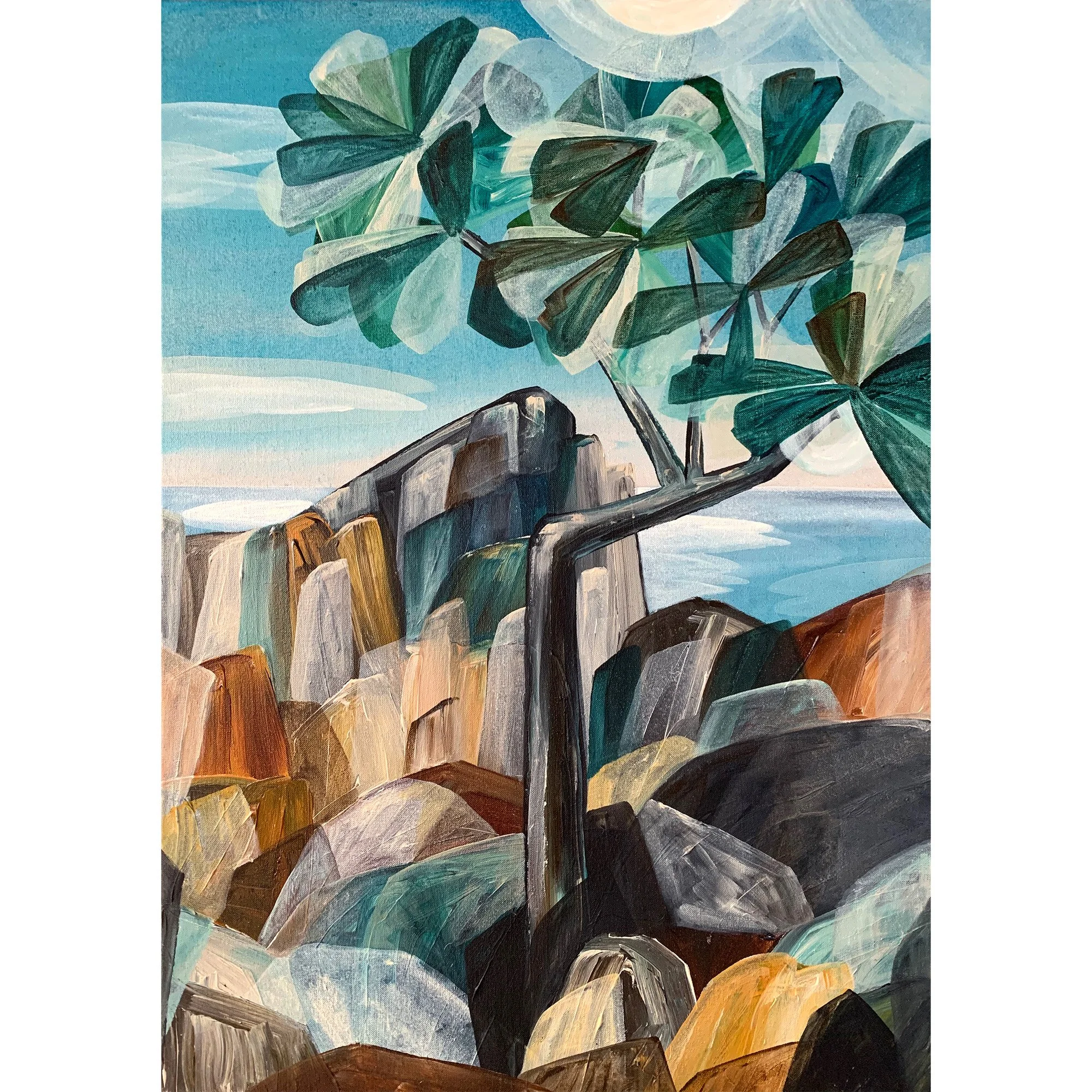 ‘Time, raw, exposed, basking in the sun’ (Wadawurrung) 2021 68cm x 48cm Synthetic Polymer on Belgium Linen